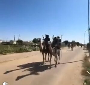 وأظهرت مقاطع فيديو، مسلحين على ظهور جمال يجوبون شوارع مدينة الفاشر، في مشاهد أعادت للأذهان حرب دارفور الأولى التي اندلعت في 2003 بين الجيش الحكومي والحركات المسلحة، حيث كانت “مليشيا الجنجويد” التي كونها نظام الرئيس المخلوع عمر البشير، تجتاح القرى والمناطق المدنية، وهي تمطي الخيول والجمال، ومن على ظهورها ارتكبت جرائم حرب وجرائم ضد الإنسانية.